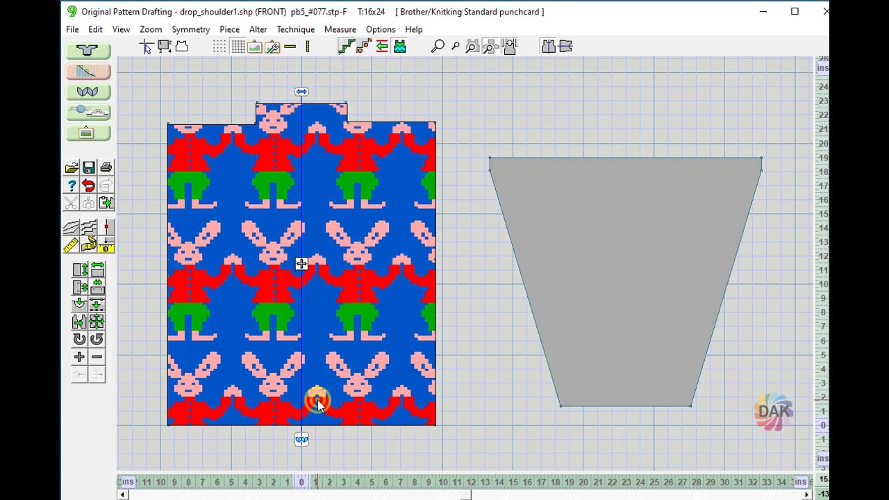For our Fairisle project, now that we've created an all-over stitch pattern, it can be manipulated in Original Pattern Drafting.